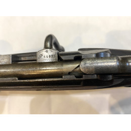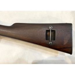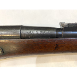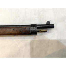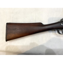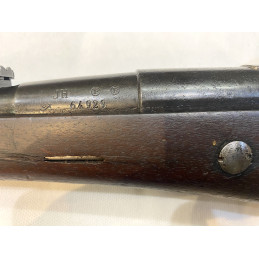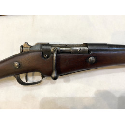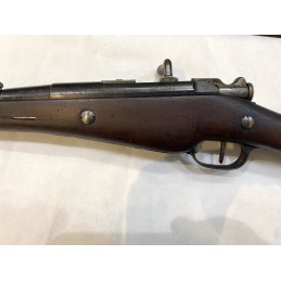 Il s'agit d'une trés rare carabine modèle 1890 1er type transformée en 2e type par le remplacement à partir de 1894 de la grenadière à anneau et du battant de crosse par une grenadière à pontet et une barrette; cette disposition a été adoptée en vue de faciliter le transport de l'arme par l'homme à cheval.