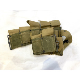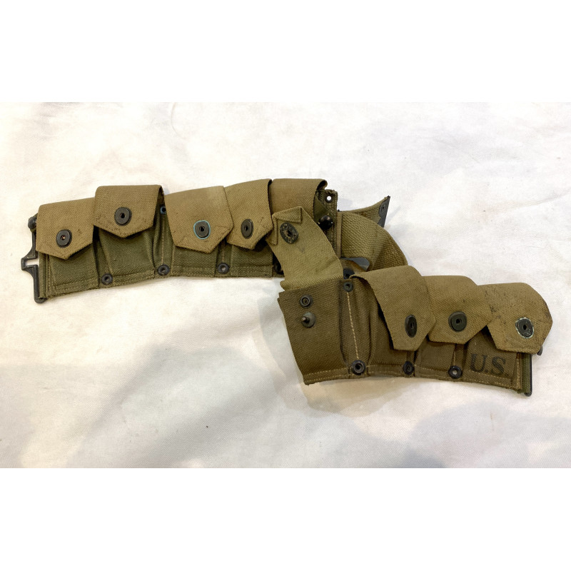 Sac à dos M-1928 de l'US Army 2e Guerre Mondiale d'origine complet fabrication BRADD'S INC 1941, avec son triangle, sa toile de tente, sa gamelle et ses 3 couverts, le tout d'origine. Avec toutes ses sangles. En bon/très bon état, quelques taches d'usage