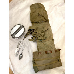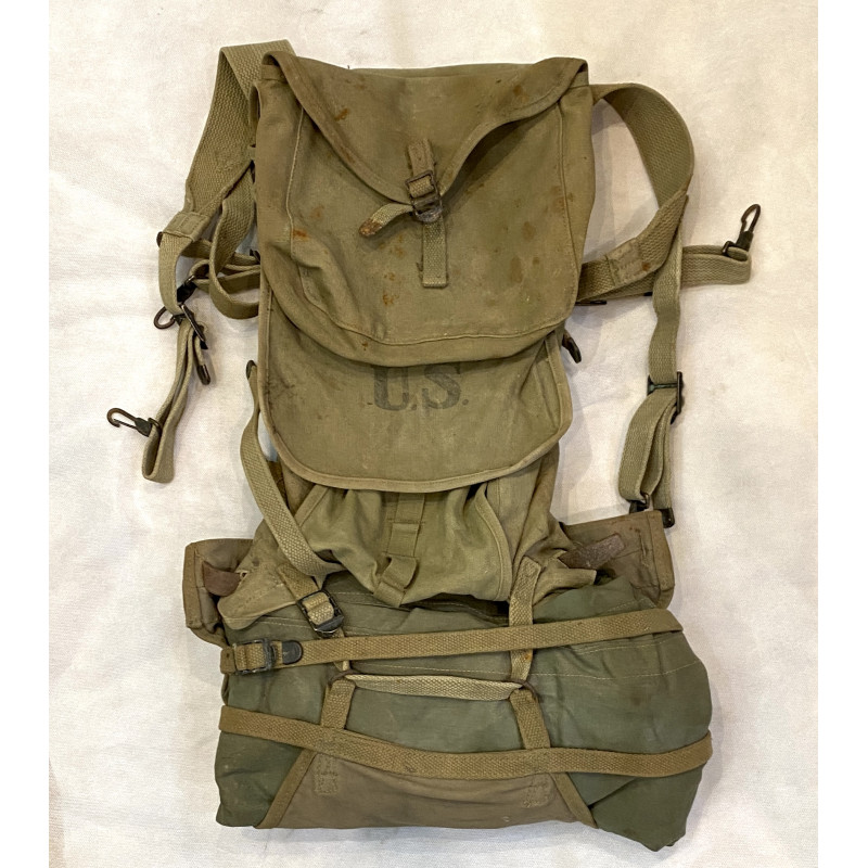 Ceinturon cartouchière de l'US Army en toile kaki, d'origine 2e Guerre Mondiale, pour le fusil M1 garand. Fabrication Hinson Mfg en 1943 Bon état général, petite oxydation au niveau des pressions.