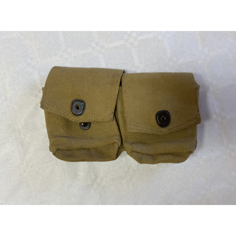 Ceinturon cartouchière de l'US Army en toile kaki, d'origine 2e Guerre Mondiale, pour le fusil M1 garand. Fabrication Hinson Mfg en 1943 Bon état général, petite oxydation au niveau des pressions.