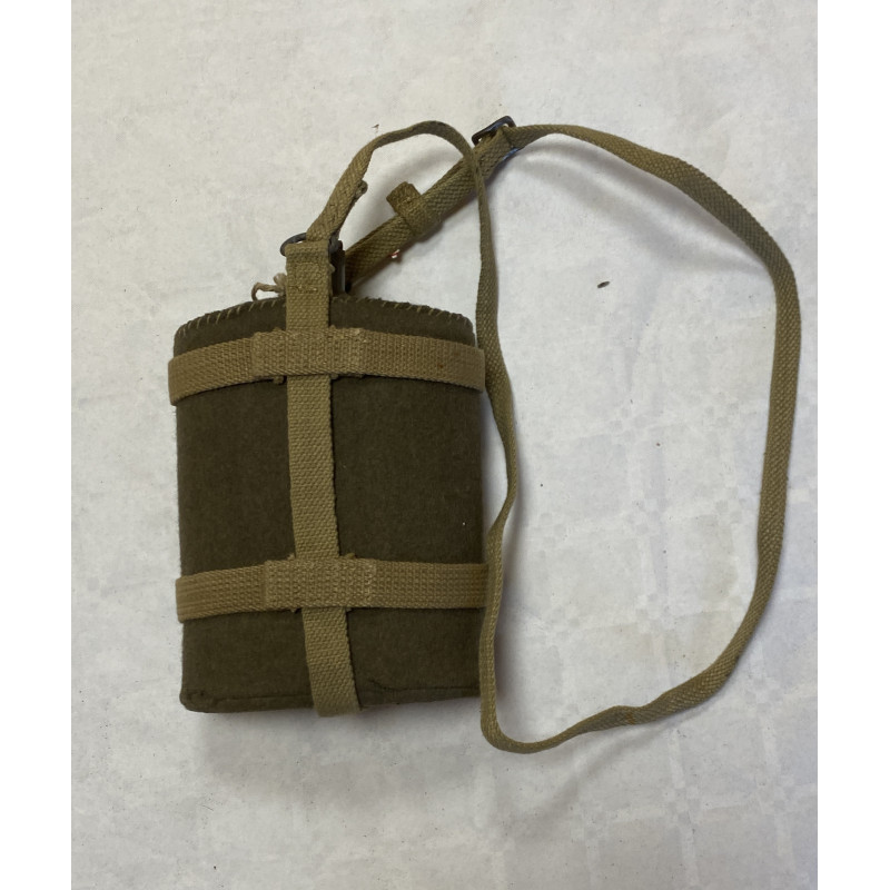 Bidon anglais avec sa housse et son rare quart émaillé origine 2e Guerre mondiale. L'ensemble en bon/très bon état, daté de 1940.