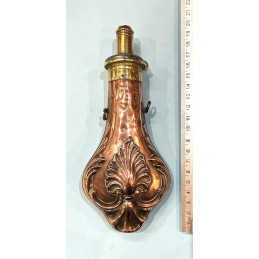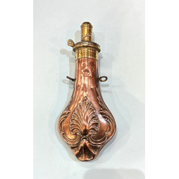 Poire à poudre en cuivre sans marquages fabrication vers 1850. Petites traces de chocs.