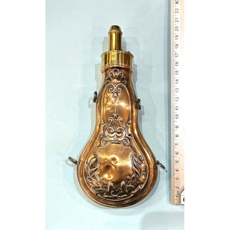 Poire à poudre en cuivre signée " BOCHE A PARIS " , fabrication vers 1840. Quelques petites traces de chocs.