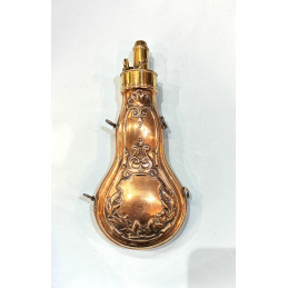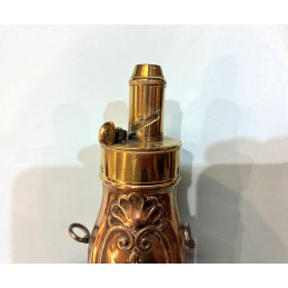 Poire à poudre anglaise, en cuivre, fabrication DRAMS, milieu du XIXe Siècle.