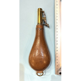 Poire à poudre en cuivre sans marquages fabrication vers 1850. Petites traces de chocs.