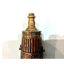 Poire à poudre anglaise, en cuivre, fabrication DRAMS, milieu du XIXe Siècle.